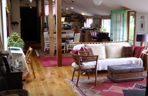 THE ZEN FARMHOUSE is located on a charming historic 1878 farm in the CATSKILLS MOUNTAINS and sits on 8 acres overlooking fields and woods with two beautiful barns and large organic garden. It's a peaceful, quiet setting with lots of wild life and beautiful and inspiring land. This charming country-casual home has recently been renovated with 3 bedrooms; 2 baths, a large Great room with wood stove, chef's kitchen, laundry (washer and dryer), efficient radiant heat and hot water on demand. Work from home, away from the maddening crowd!