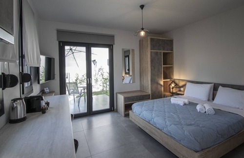 TheaSea Luxury Suites is a brand new built complex that will open its gates to welcome you from May 2022. Its architectural design will enchant you and its amenities will satisfy even the most demanding visitor. It has 3 studios, 2 bungalows with private garden, 1 floor apartment with roof garden and 1 two-storey villa with private garden and roof garden. All rooms have an espresso machine, kitchenette, hairdryer and are self-contained. The apartment and the villa also have a washing machine, oven and iron.