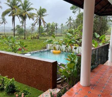 Featuring a garden, Theeram - Whispers of the River features accommodations in Kannur. This property offers a private pool, free Wifi, and free private parking. Providing access to a balcony with garden views, the air-conditioned chalet consists of 1 bedroom and a fully equipped kitchen. A flat-screen TV is offered. There is an on-site bar. Kannur Train Station is 16 miles from the chalet, while Thalassery Train Station is 28 miles from the property. Kannur International Airport is 27 miles away.