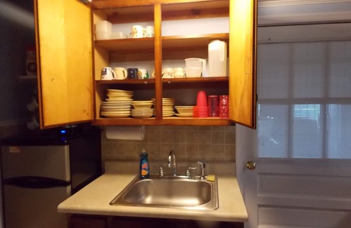 This is a Private apartment with 1 bath, 1 queen bed, 1 Trundle Bed with Two Twin Mattresses, stove, microwave, dishes, pots and pans. All the comforts of home! (AND THEN SOME)