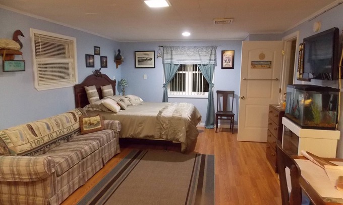 You have free rein of the property and can come and go as you please. The kayaks are here for you to use, as well as the fishing poles! I do ask that you take a life jacket with you if you will be on the water. It is a safety issue and I want all of my guests to be safe. If you decide to take anything to the beach to use, please return it where you got it when you are done. The life jackets, fishing poles, paddles and umbrellas are found one the back porch beside the garden hose.