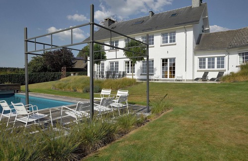 Tucked into the scenic hills of Theux, this modern 5-bedroom villa offers a luxurious retreat for up to 9 guests. Ideal for families or groups, the home features a private outdoor swimming pool (open June 15–Sept 15), an infrared sauna, and a furnished garden with terrace and barbecue—perfect for relaxing after a day of adventure.