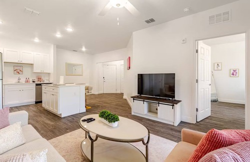 This playful and stylish 2-bedroom, 2-bathroom rental is perfect for girls’ trips, small families, or anyone who loves a splash of color.