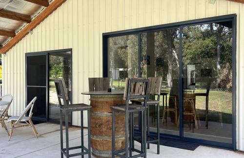 Your experience at Thirty Two Marloo is enhanced by thoughtfully designed amenities that cater to your every need. The property features open-plan living, a spacious patio perfect for outdoor ceremonies, and well-appointed accommodations including two queen bedrooms and a versatile open bedroom, comfortably sleeping up to eight guests. Enjoy modern conveniences like a fully equipped kitchen, barbecue facilities, and smart TVs for evening entertainment. The large grounds provide ample parking for guests, ensuring everyone can join in the celebration without hassle.