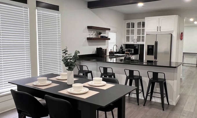 This Industrial home is perfect for gathering with friends or family. It's spacious, cozy, and perfect for family or friends. The location is convenient, with easy access to shops, restaurants, and entertainment like Magnolia Silos. You'll love the modern amenities and the comfortable layout. It also features a private driveway and a gated backyard. You'll have a secure space to park your vehicles and enjoy some outdoor privacy. It's the perfect combination of convenience and peace of mind!