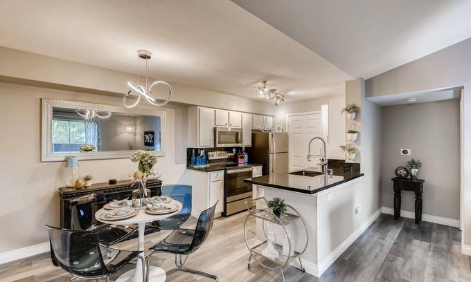 Upgraded 2 bedroom, 2 bathroom second-floor condo located in the heart of Henderson! Very close to shopping and restaurants. Smart TVs in both bedrooms and living room. Mountain views from balcony. Fast wifi, hardwood flooring. Stainless steel appliances in the kitchen, upgraded countertops and upgraded lighting throughout.