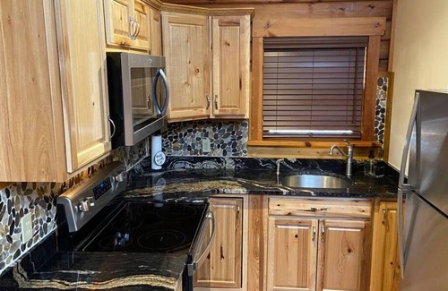 This lovely fully remodeled two bedroom one bath cabin is the perfect base camp for all of your lake adventures. Your private log cabin includes a deck overlooking the lake, living room with new comfortable furniture, 55" Smart TV and high speed internet for streaming, fully stocked kitchen with beautiful granite counters, full bathroom with tile shower, two bedrooms with queen beds and memory foam mattresses. Lovely understated comfortable decor. Bring your own firewood or purchase from us and enjoy the gorgeous stone fire pit. The perfect spot to relax and step away from the busy world while enjoying time with friends, family or even a solo sabbatical to rest, recharge and rejuvenate.