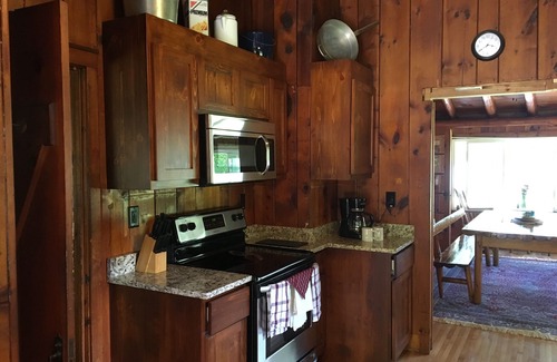 Newly remodeled fully stocked kitchen with refrigerator, electric stove, dishwasher, and microwave. Formal dining room seats 12+. Updated bathroom with full size washer and dryer. Huge great room with beautiful floor to ceiling stone fireplace and two twin size unique windows beds. (Great for the kids).