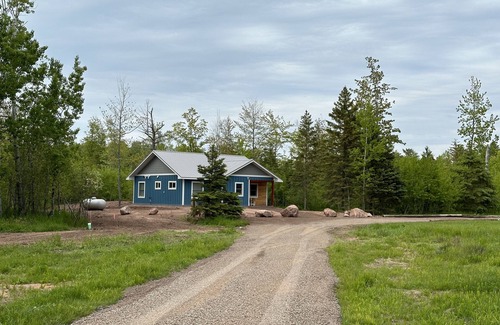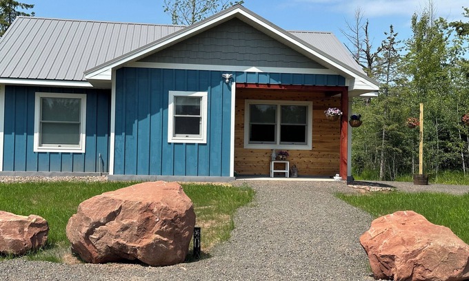 A roomy screen porch attached to the kitchen allows you to enjoy being "in the woods" without the bugs. The screen porch features dimmable lights, a ceiling fan, comfortable lounging furniture, and a bar top that seats four people with a pass-through window to the kitchen sink. You can read a book, observe wildlife, eat your meals, play games, or take an afternoon nap in the gentle breeze from Lake Superior. Outside the screen porch there is a gravel patio, a gas grill, and a fire ring with a grill grate for open fire cooking. On the front porch, overlooking a grassy field with wildflowers, you can sit in the afternoon sun or look up at the Milky Way when the stars come out.