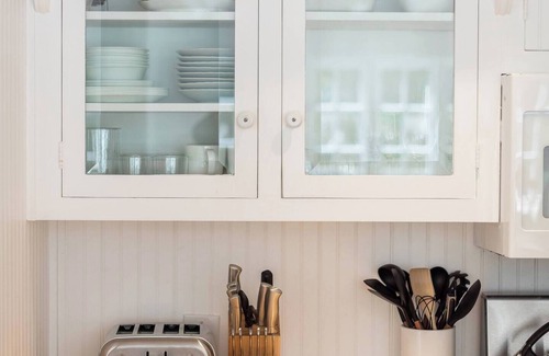Recently renovated inside and out, this warm and inviting cottage offers high-end furnishings and art, with a full kitchen, newly remodeled baths, and a cozy fireplace for chilly evenings. Working from home is a pleasure in the beautiful, designated work space.