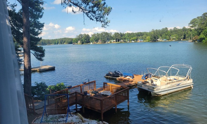 Our home is only a few feet from the water's edge. With several ways to easily access the lake. One way offers easy access for the kids, by taking a series of steps into the lake. Another way is to take a dive off the floating dock, or just enjoy the lake on the stable dock with the most fantastic view of the lake.