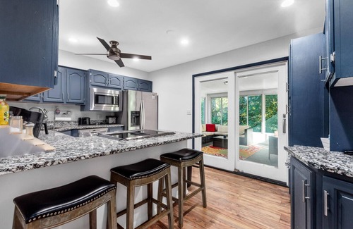 With thoughtfully furnished bedrooms designed for rest after the festivities, you and your guests can unwind in style. The fully equipped kitchen allows you to cater to your needs, whether it’s preparing a celebratory meal or enjoying a casual breakfast with loved ones. Take advantage of the sunroom and deck, perfect spots for pre-wedding brunches or evening relaxation. The large backyard is an excellent space for outdoor activities, providing ample room for photo opportunities or tent setups for your reception. Additionally, modern amenities like smart TVs and high-speed Wi-Fi ensure a seamless stay while garage parking keeps your vehicles safe and secure.