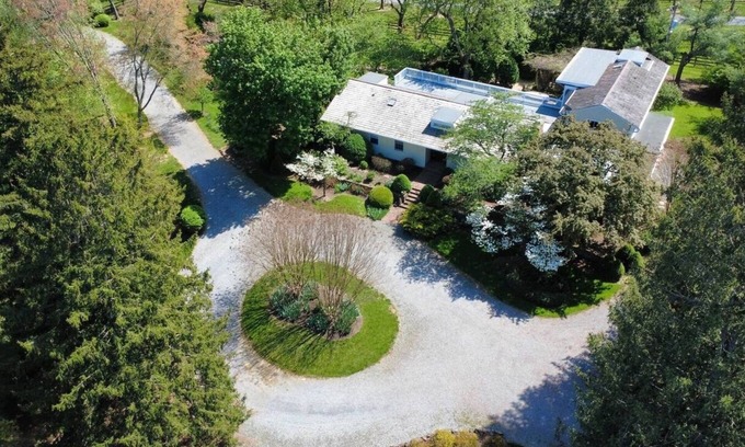 The property is located off a paved county road and surrounded by historical horse farms and estates.