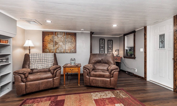 Smallmouth bass fisherman will find the location perfect for access to the Fever River and its feeder streams. Bring your kayak as The Fever is a great paddle. Local maps are provided in the lodge. The house has been recently updated and well equipped for a weekend or a week. The house is a three bedroom with one full bath with a washer and dryer. There are two queen beds downstairs, and the upstairs private bedroom has a king bed all with new comfortable bedding. There is a large mud room to contain your exploring gear. Guest will have access to the entire house and yard. Entry is gained thru a key pad. Please be respectful of the neighbors.
