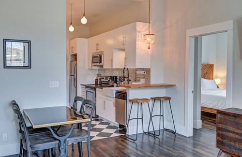 This charming two-bedroom flat is ideally located a block from Buena Vista’s river park, making it the perfect accommodation for wedding stays in the vibrant South Main neighborhood. With ample space and modern amenities, you can create lasting memories during your special occasion.