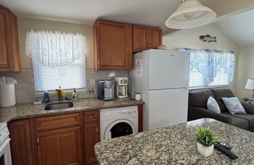 Cathedral ceilings, nice clean two bedrooms, one bath ,open floor plan hardwood floors, central A/C fully equipped kitchen, complete with all the essential cooking appliances ( blender, toaster, regular coffee maker, K-cup..) granite counter top, center island, washer and dryer , Flat 40' LED Cable TV, WIFI..