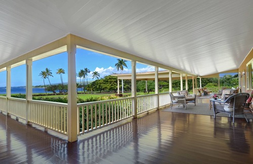 This magnificent, island-style estate truly exceeds all expectations. Located on secluded Pakala's Beach on Kauai's west side, this totally serene property borders an orchard and is heavily sprinkled with mature shade trees and a variety of palms. A long driveway leads guests through a breathtaking panorama to a welcoming portico. The large, southern-style veranda looks out across an expansive landscape and a low, lava rock wall to the Pacific Ocean. This is the perfect vantage point to enjoy spectacular island sunsets.