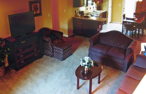 Beautiful time of year in the Shenandoah Valley this time of year ! (Flowers are blooming, grass is so green, and the trees are budding with new leaves of Spring !) The unit is a 2 bedroom lock-off, which can be rented as a complete 2 bedroom accommodation (sleeping 8), or 2 separate 1 bedroom accommodations (sleeping 4 each). If the unit is split to 2 - 1 bedroom lock-off units, there is a full kitchen in the large side, and a partial kitchen in the smaller side. Both sides are completely stocked with linens, kitchen utensils, T.V.'s, etc. Whatever your preference, or need, we are sure you will be more than satisfied with this unit (either combined, or split), on this beautiful Resort location.
