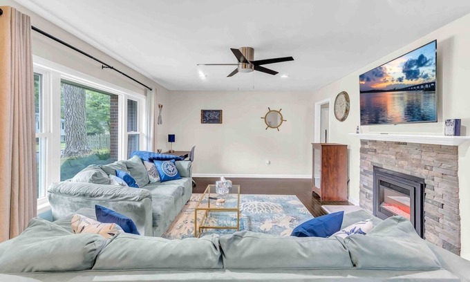 You will enjoy the spacious and comfortable living room with a color changing fireplace for ambiance. 65 inch smart TV. Each bedroom has a 40-50 inch smart TV.