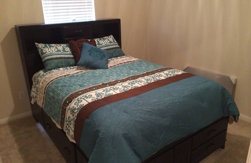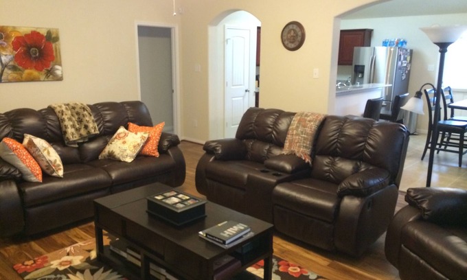 Guests are sure to enjoy a memorable weekend in this fully furnished, 4 bedroom/ 2 bath cozy home. The main/master bedroom has a Queen sized bed, walk in shower and garden bath tub. Two of the three remaining bedrooms are furnished with queen sized storage beds as well, The 4th room has a queen size air mattress available if another bed is needed. All in all the home is comfortable for sleeping 8 people. The living room is furnished with reclining sofas, and a lazyboy, perfect for kicking back and enjoying some down time. The dining room is equipped with a table for 6 and 2 bar stools at the kitchen counter for extra seating. This property is also conveniently situated 10 minutes from NRG stadium.