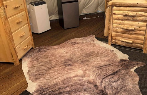 You should also know that this Tipi has bottled water in the fridge but no running water. A drinking water tap is nearby, and the restrooms have coin-operated showers that cost $3.00. There is a change machine in the front of the resort in our guest laundry room. You'll receive more details with the guest guidebook message I'll send before your arrival.