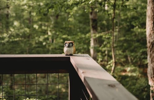 We have a wonderful outdoor area with your own fire pit and grill , As you go up the wooden sidewalk to enter the treehouse you feel like you're nestled in the trees like a wise Owl .