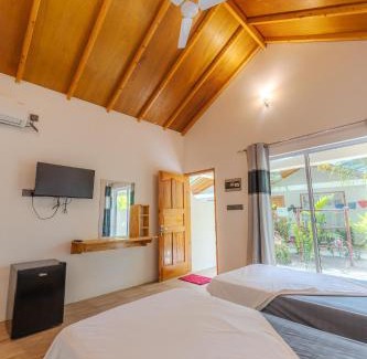 A 7-minute walk from Thoddoo Beach in Thoddoo, Thoddoo Sun Sky Inn, Maldives provides accommodations with access to spa facilities and wellness packages. Among the facilities at this property are a 24-hour front desk and a shared kitchen, along with free Wifi throughout the property. The accommodation features full-day security, luggage storage space, and currency exchange for guests. This air-conditioned guest house comes with a fully equipped kitchen, a seating area, a dining area, and a flat-screen TV. A private entrance leads guests into the guest house, where they can enjoy some fruit. The guest house offers bed linen, towels, and daily room service. Continental and Asian breakfast options with local specialities, pancakes, and fruit are available. Guests are welcome to relax in the on-site lounge, while packed lunches are also available upon request. For guests with children, the guest house offers a baby safety gate. A bicycle rental service and a private beach area are available at Thoddoo Sun Sky Inn, Maldives, and guests can go walking tours in the surrounding area.