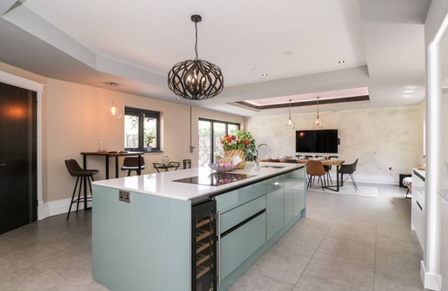 The living areas in this property consist of a kitchen/diner, a sitting room, a cinema room, and a utility. Appliances include an electric oven and hob, microwave, fridge/freezer, washing machine, tumble dryer, dishwasher, five Smart TVs, and a woodburning stove. The bedrooms consist of four super-kings with en-suite showers, and a ground-floor king, serviced by a shower room and a cloakroom. Outside, there are gardens to the front and rear with furniture, bike storage and a hot tub, along with off-road parking for four cars. Within 1.6 miles, you will find the nearest shop, and within 0.7 miles, a pub. Please note, this is a pet-free, non-smoking property. Wi-Fi, fuel, power, bed linen, and towels are all included in the rent. Highchair, travel cot and stairgate available on request. This property accepts a minimum of 3 nights.
