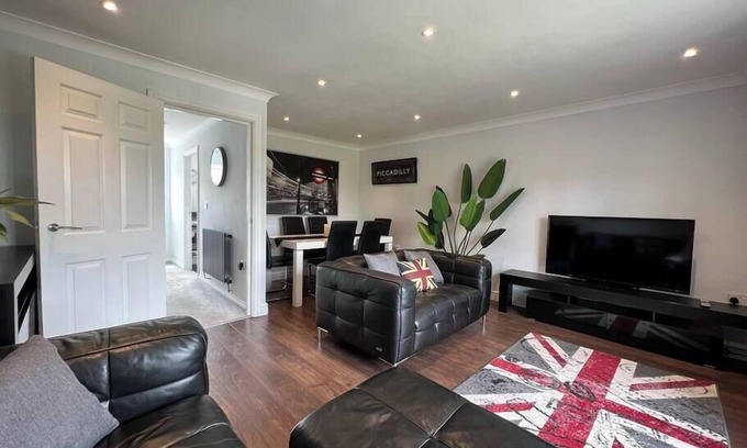 Three Bed Townhouse with Parking is located in Telford. Three Bed Townhouse with Parking provides accommodation, featuring Pet Friendly, TV, Balcony/Terrace, among other amenities. This House features Pet Friendly, TV, Balcony/Terrace, to make your stay a comfortable one.
