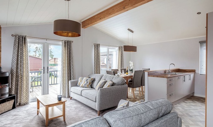 Luxury lodge featuring two large double bedrooms and a twin room, two bathrooms and a spacious open-plan living area complete with a fully equipped kitchen, dining table and a relaxing lounge with a wood-burning effect fireplace. This lodge features a small hot tub. No Pets.. Nestled within the picturesque Lee Valley Regional Park, Roydon Marina Village is a hidden gem offering a perfect escape from the hustle and bustle of city life. Just 30 minutes from central London, this enchanting retreat spans across 32 acres of serene landscape, featuring a stunning lake and secure marina moorings for narrow and wide beam vessels. Whether you’re seeking a short getaway or a longer stay, the village provides a tranquil environment to unwind and enjoy nature’s beauty.