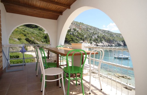 Apartment can accommodate 7 guests. Beds are situated in 3 sleeping rooms, but also in the dining room, within 50m2. Guests can use a private terrace to enjoy the warm summer evenings. The apartment offers the sea view. Food can be prepared using barbecue which is shared with other guests too. This accommodation unit welcomes pets at an additional charge.