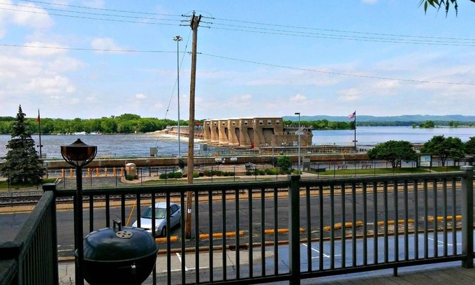 Furnished 3 bedroom condo, located across from the Mississippi River with great views of eagles overhead and the Alma bluff. Features - 1 king size bed, 1 queen bed and 1 full bed. 3/4 bathroom, kitchen stocked with the essentials, coffeemaker, microwave, griddle & large deck overlooking the river.