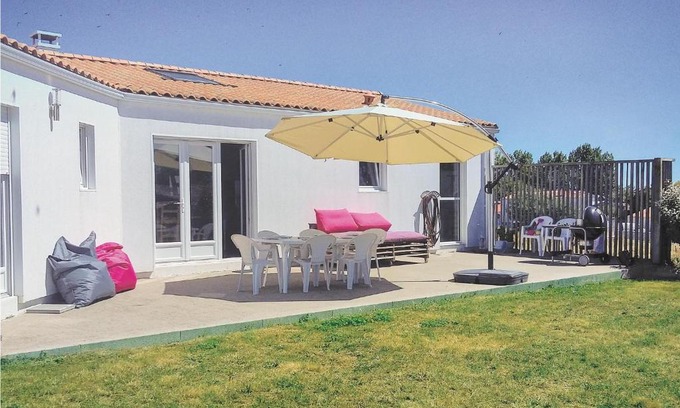 Three-Bedroom Holiday Home In St Michel En L'herm offers accommodations in Saint-Michel-en-lʼHerm, 28 miles from L'Espace Encan and 29 miles from Exhibition Park of La Rochelle. The 3-star vacation home is 28 miles from La Rochelle Train Station. There's a sun terrace and guests can use free Wifi and free private parking. This vacation home includes 3 bedrooms, a living room and a TV, an equipped kitchen with a dining area, and 2 bathrooms with a bath and a washing machine. The accommodation has a fireplace. Mytiliculture Museum is 20 miles from the vacation home, while La Rochelle Grosse-Horloge is 28 miles from the property. La Rochelle - Île de Ré Airport is 30 miles away.