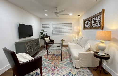All of this house is available for guests use except the primary bed/bath, which is closed off. Guests are welcome to use the kitchen and laundry facilities.