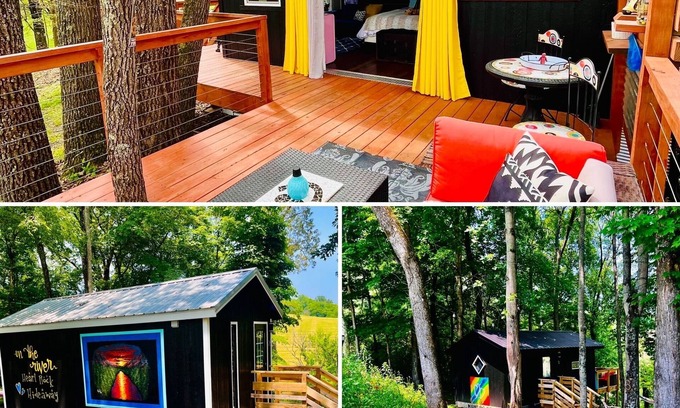 Grab your best friends or family and take in a few days of creative serenity down on the river. On the River by Heart Rock Hideaway is the dream that made its way to reality. We created this peaceful oasis because we believe that world needs more joy, more calm, more happiness. This property is located an almost 10 minute walk to Downtown Sparta. The studios are located at the end of a dead end street overlooking the rolling hills of Middle TN as well as the ever beautifully flowing Calfkiller River. We rent each unit separately but by request, we have bundled all three for that perfect staycation, vacation, or just that much needed mental health break.