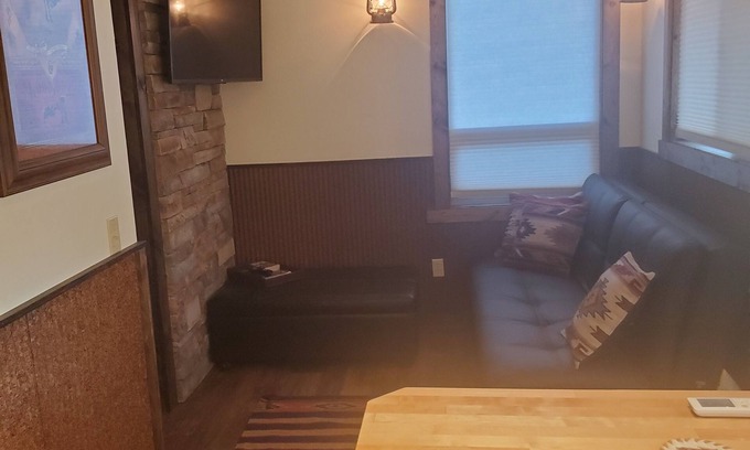 Welcome to the Stable. Right on Main Street in picturesque Three Forks, Montana, this cabin is attached the the historic Three Forks Saddlery. With old west decor throughout, the first bedroom has a comfy queen size bed. The second bedroom has bunkbeds large enough for adults and a place to hang your clothes. The bathroom has a beautiful tiled walk-in shower. In the main living area, guests can enjoy a full kitchen, dining bar overlooking mainstreet and a comfortable living room.