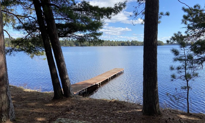 Located on the northern shore of Big Fork Lake on the Three Lakes Chain, the cabin is right across from the Chequamegon Nicolet National Forest. The area is a prime silent sports location for biking, hiking, boating, fishing, kayaking and walking. We are six miles from the shops and restaurants of downtown Three Lakes and 16 miles south of Eagle River. There is a public boat launch only 4 miles away and many multi-purpose trails within a short drive. Dock a boat or pontoon at the private pier. Boat rentals are available at nearby marinas.
