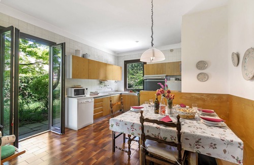 Quietly situated on a sunny hillside this gorgeous holiday home-away-from-home is surrounded by mature trees and a pretty garden. Guests can relax on the lawn with a good book or enjoy alfresco meals under the small loggia that extends from the kitchen.