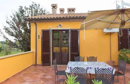 The apartment is located at the first floor with pool view in a country house in Vada, in a completely fenced 7-hectare estate with olive trees and a small oak forest on the Etruscan Coast in the province of Livorno.