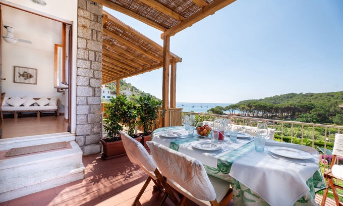 A feeling of relaxation is immediately felt when passing through the gate of the terrace of the Montecristo Three-room Apartment. It is surrounded by the spontaneous Mediterranean garden and organized to eat outdoors while enjoying a splendid view of the bay. The three-room apartment is only 150 meters from the beach and is equipped with 2 bedrooms from the bed, living area with kitchen equipped with all appliances, bathrooms with shower, free wi-fi, air conditioning ( cold and hot), ventilation system with ceiling blades, and reserved outdoor parking space. Apartment services: terrace dishwasher dishwasher gas cooker, dishes, glasses, cutlery, electric oven tablecloth machine coffee capsulefree wi-fiTV with air decoderclimatisation ( cold and hot)ventilation ceiling-mobile garden blades less than 200 meters from the outdoor reserved car pool