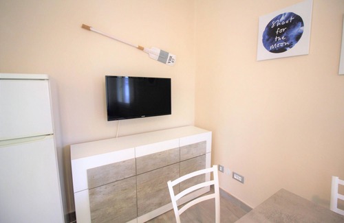 Renovated three room apartment on ground floor located 250 meters from the seaside. The flat is composed of living room-kitchen, double bedroom, bedroom with bunk bed and extractable single bed, common garden, parking space, equipped with TV, washing machine, microwave, air conditioning, automatic shutters .