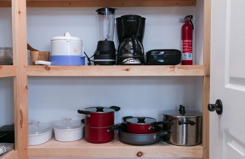Our starter home kit offers a limited supply of essentials such as toilet paper, paper towels, hand soap, dishwashing detergent, laundry detergent, and trash bags. Please anticipate bringing any additional supplies needed for your entire stay, including personal care items. Linens and towels are thoughtfully provided to ensure a stress-free experience.