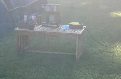Community grill, community water, electric for charging station, hot water outdoor shower and restroom on site. Fire wood for sale and kayaks available for daily rental. There maybe other campers on the property, but always plenty of room for your own space! Everything on the property is for community use.
