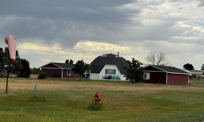 Unique Dome House Located in an Airpark! Corner Lot with a beautiful view of the mountains and the runway !! It’s a great cozy feel with super comfy couches in the main living room area (my favorite place) and a fun place to stay.
