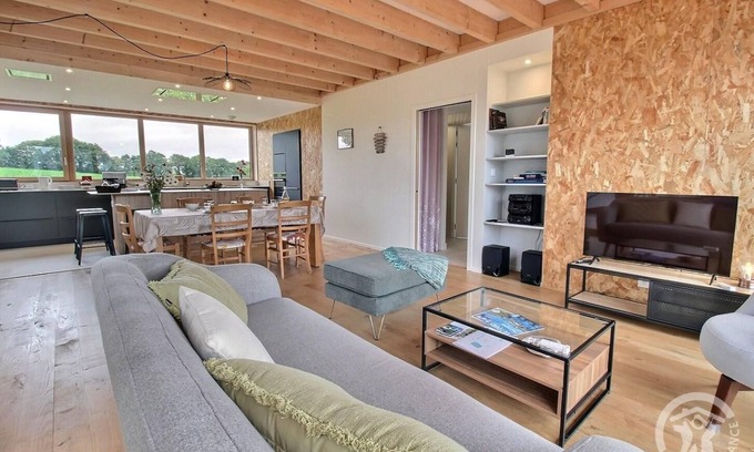 Your vacation rental is on one level. It includes fitted kitchen, living room, lounge, two bedrooms (1 160x200 bed, 2 90x200 beds), bathroom with shower, toilet. A winter garden with laundry area and garden furniture table. - Outside : A 20 m² terrace and a 150 m² private garden (currently being developed). - Parking of your vehicles in private courtyard (200 m²) On the Goëlo coast, this pretty house, built with healthy and sustainable materials, will appeal to all those looking for the relaxing setting of the countryside while being close to the sea. Bathed in light thanks to its large bay windows, equipped with a comfortable interior and a harmonious decoration, it will seduce you from the first sight. You will almost hesitate to go out and yet, here, there is no time to be bored! The seaside resort of Binic, with its lively quays, beaches and shops is 5 km away. You will just as appreciate the beautiful family beaches of Etables sur Mer (6 km) or those of St Quay Portrieux 11 km away. From there, hikers can walk the GR34, since it runs along the coast. Want fun family activities? Join the Lantic Parc Aventure 2 km away. The joys of tree climbing, paintball, etc. are yours to enjoy. 3 km away, the Tregomeur zoo is also worth discovering. Golf des Ajoncs d'Or 7 km away. Accommodation reserved for leisure customers.