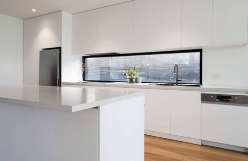 Sleep easily in each of the three bedrooms, with central cooling and heating. The primary bedroom highlights a queen-sized bed with a TV, wardrobes and an ensuite bathroom with a rain shower. The second bedroom also features a queen-sized bed, while the third bedroom comes with two single beds, perfect for those travelling with kids. Refresh within the design-driven main bathroom, enjoying a soak in the freestanding tub. Both bathrooms are stocked with complimentary boutique toiletries. You’ll also enjoy the convenience of laundry facilities, ideal for longer stays.