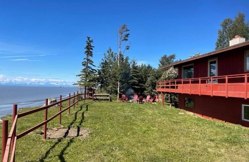 This is a one level, basement two bedroom apartment perched on the edge of an ocean bluff overlooking the amazing and majestic Alutian Mountain Range including three of the tallest volcanoes in North America. Sit outside on the lawn and enjoy the beautiful views and take in everything that Alaska has to offer or head down to the Kenai River and do some Salmon fishing. You are not far from the Kenai Airport in case you want to take a day trip to see the bears.