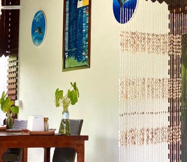 Tides Dhigurah in Dhigurah provides accommodations with a garden and a shared lounge. This guest house provides air-conditioned accommodations with a balcony. The guest house features garden views, a sun terrace, and free Wifi is available throughout the property. At the guest house, units include a desk. Each room includes a private bathroom with a shower, a hair dryer, and free toiletries. At the guest house, each unit includes bed linen and towels. There is a coffee shop, and a mini-market is also available. For guests with children, the guest house offers an indoor play area and a baby safety gate. Both a bicycle rental service and a car rental service are available at Tides Dhigurah. Dhigurah North West Beach is a few steps from the accommodation.