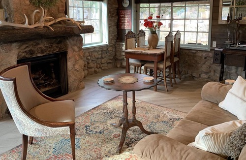 For those that want to feel like they’re stepping back in time this is your place! Set amongst century old fruit trees and raised garden, this native 600 SF stone building was originally built and used as a retreat center which consisted of dirt floors, open stud framing and no running water. Today it has been transformed into a very rustic, yet cozy retreat with a full kitchen, bath and wood burning fireplace. You’ll find everything you need to make your stay enjoyable.