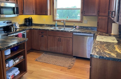 Kitchen: Fully equipped w/ cooking basics, dishwasher! microwave, Keurig coffee maker, kettle